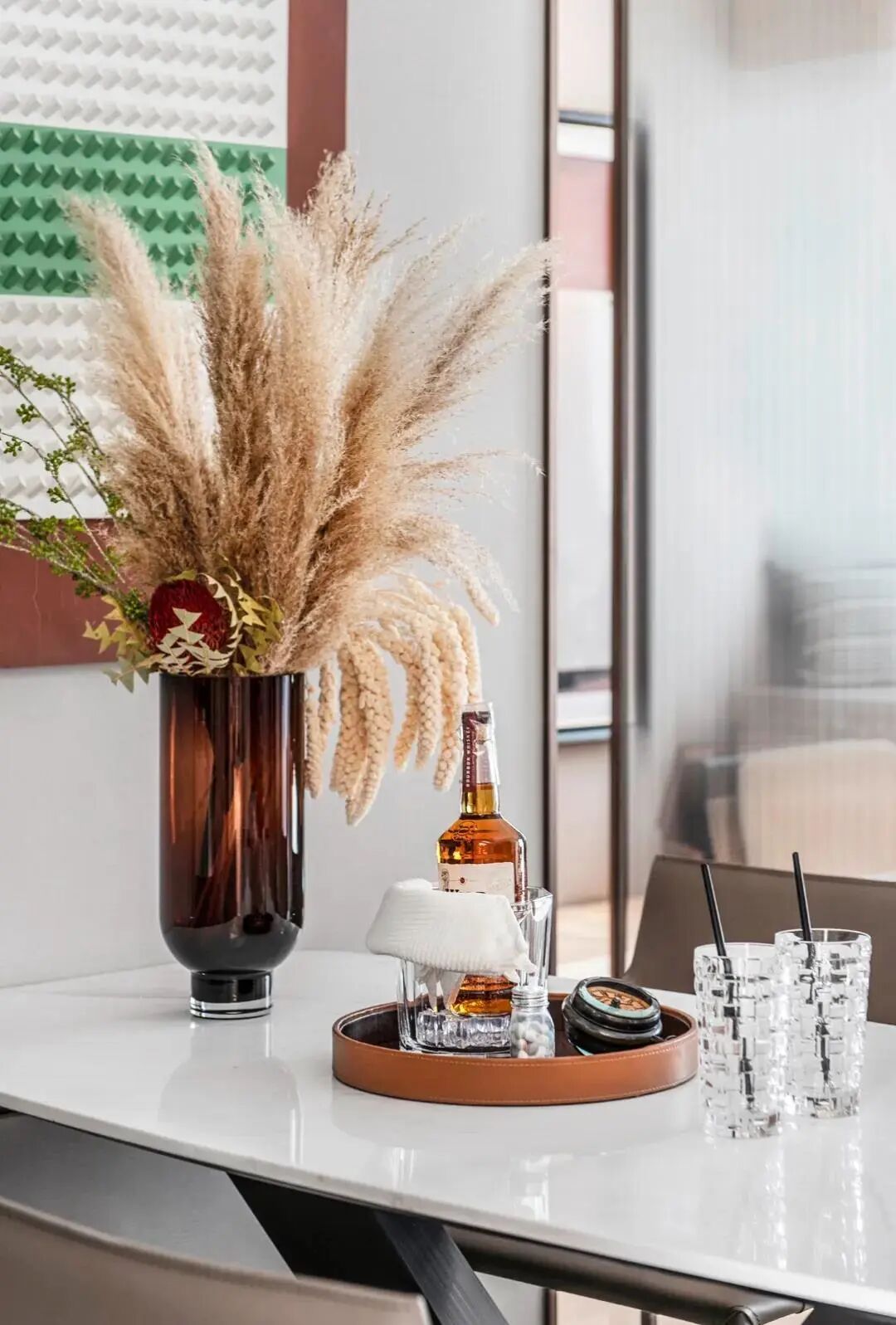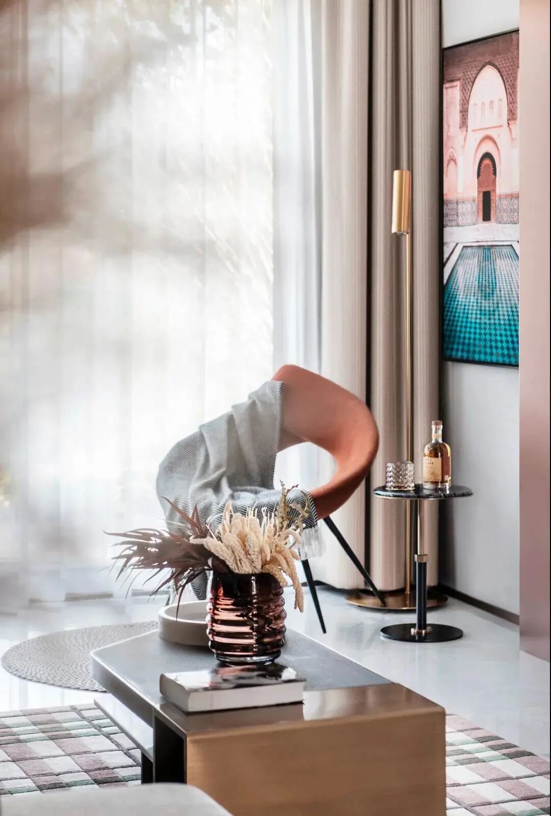 75平米时尚温馨轻奢三居室。发表时间:2020-07-09 16:45 百年匠心装饰 老百姓的专业家装公司 整体家装 私人订制 匠心工艺 一线大牌主材 一站式选材 全程线上跟踪进度 选择百年匠心装饰,省时省力省心省钱! 今日推荐【75平轻奢风】 平面图 ![]() 本次分享的套内面积75平的三居室, 装修选择了当下流行的轻奢风格,时尚精致感跃然纸上, 丰富的色彩、活跃的氛围、温馨的效果, 打造出了一个极具浪漫气息的婚房效果,实在太惊艳了。 餐厅 ![]() 餐厅、阳台,呈开放式格局,空间通透极了,色彩上, 全屋背景墙以暖色为主,洋溢着淡淡的浪漫气息。 客餐厅整个相通的吊顶设计,并且还用了线条勾勒, 更立体更美观。 ![]() 餐桌上的酒杯、饰品,及悬挂下来的吊灯, 让整个用餐环境更具格调。不管硬装、家具多么简洁, 恰到好处的软装,总能让人眼前一亮。 客厅 ![]() 打通之后的阳台,摆设单人座椅、茶几与落地灯, 作为休闲区很惬意。客厅家具不多,体型不大, 并且舍弃了传统电视柜,用悬空式台面代替, 节省了空间,还看着轻巧。 ![]() 背景墙上的挂画,很有层次,颜色也挺鲜艳, 可以活泼氛围,让客厅更年轻有活力。 沙发一边舍弃了传统边几,用轻巧便捷的新型设计代替, 时尚更实用。 ![]() 茶几的造型,挺别致,上面摆些花艺饰品, 增添不一样的美感。 ![]() 电视墙一边设开放式展示架,摆些书籍、饰品,不仅可以装饰背景墙,还能彰显主人审美与品位。 主卧 ![]() 主卧床头背景墙设计得还挺个性,一些造型图案, 随意灵动、自带美感。玻璃衣柜十分潮流, 收纳分区合理,中间挂放衣物,高低合适。 ![]() 床头柜上,装饰画、花艺,搭配上方精致吊灯, 单单一个局部,看着就格外亮眼。 休息室 ![]() ![]() 休闲室,装了玻璃隔断,简单划分了区域, 成为了一个半开放式的位置,有一定的独立性。 休闲室以主人喜好布置,带着一些复古、慵懒、随性的感觉。 ![]() ![]() ![]() 桌面上摆满了各类物品,有复古风十足的钟表, 还有文艺范的装饰画,还有背景墙上的旧海报, 总之元素众多,效果独一无二。 ![]() ![]() ![]() 床头一边设了小矮桌,方便孩子看书、玩耍。 靠墙设了一款边柜,可以满足简单储物的需求, 统一的粉色温馨极了。 |
